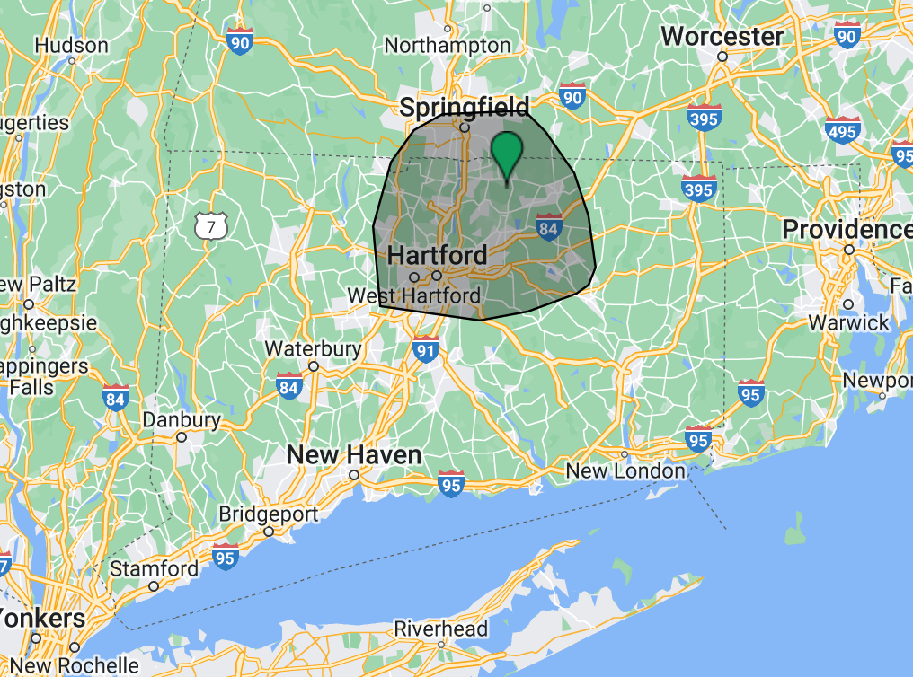 We proudly provide tree services throughout Connecticut and Western Massachusetts, extending as far north as Holyoke. While the map below highlights our primary service areas, our work has also taken us beyond—into Rhode Island, New York, and along the Connecticut shoreline. Wherever the job calls, our team is ready to deliver reliable, expert service.