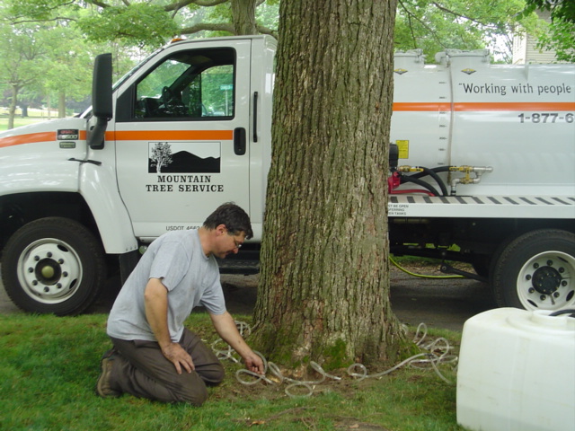 At Mountain Tree Service, we offer advanced tree care treatments, including trunk injections, to deliver nutrients and targeted solutions directly into the tree. Similar to traditional fertilization, trunk injections help improve tree health, promote growth, and protect against disease and insect damage. Our expert arborists provide trusted tree care services in Connecticut and Western Massachusetts to keep your trees strong, healthy, and thriving.